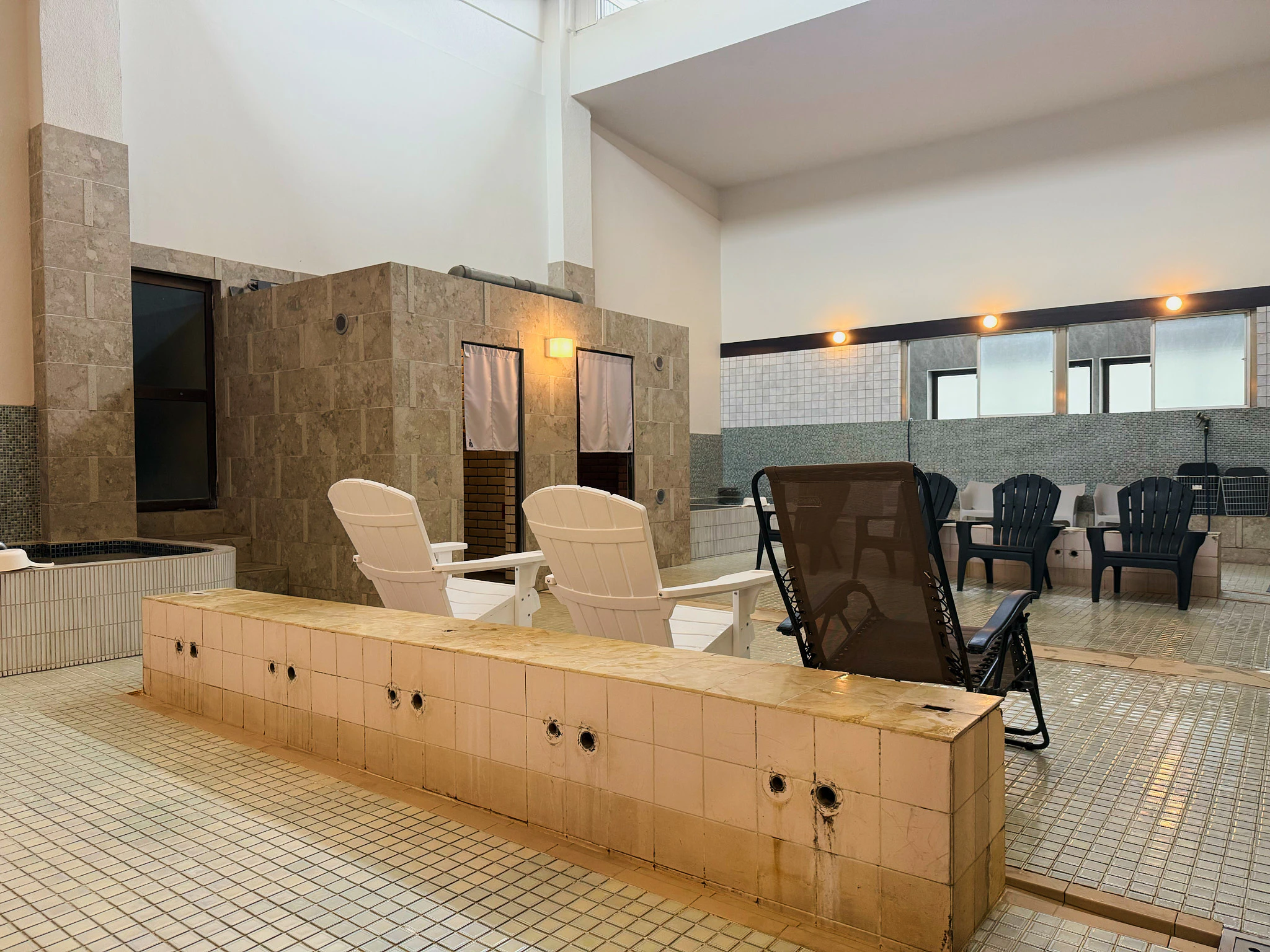 3つ目は、半露天のととのいルーム。一見何もないように見えますが、実は浴場の一番奥にひっそりとあります。