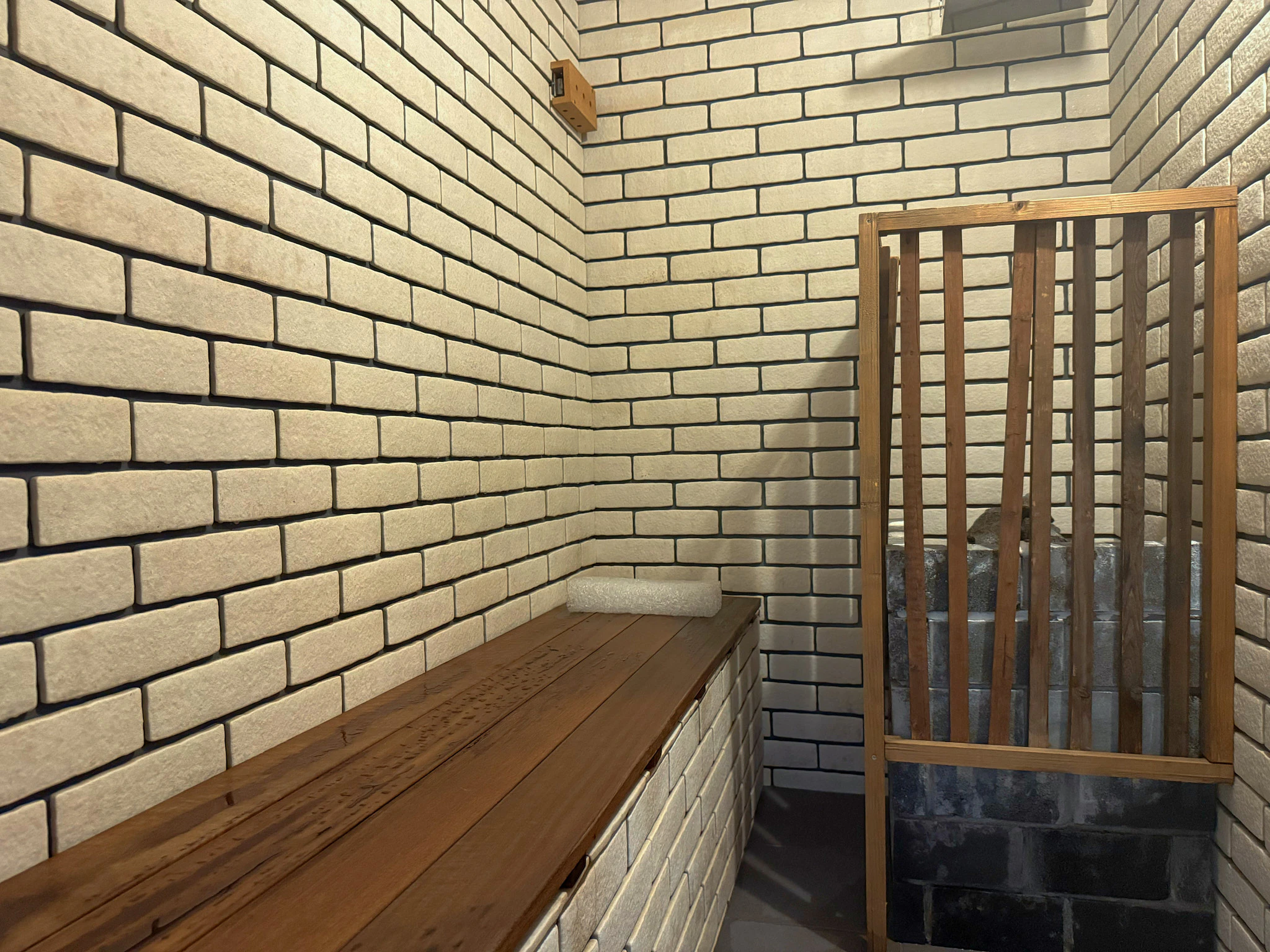 外の空間が気にならないので、落ち着いてととのいたい時にもおすすめです。レンガ調の内装もあたたかみが感じられます。