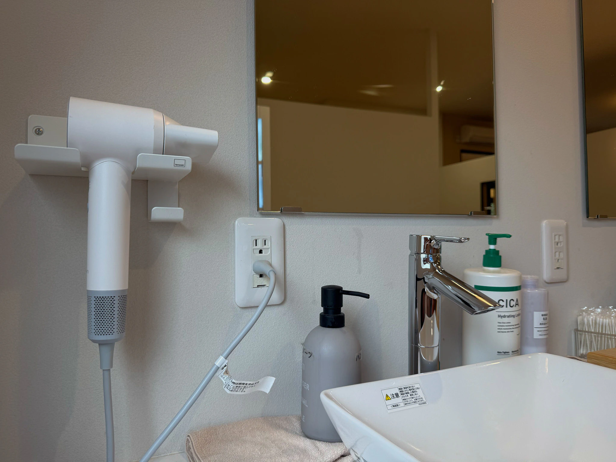 脱衣所には化粧水と乳液があり、ドライヤーも無料で使えます。ホスピタリティに頭が下がります…!