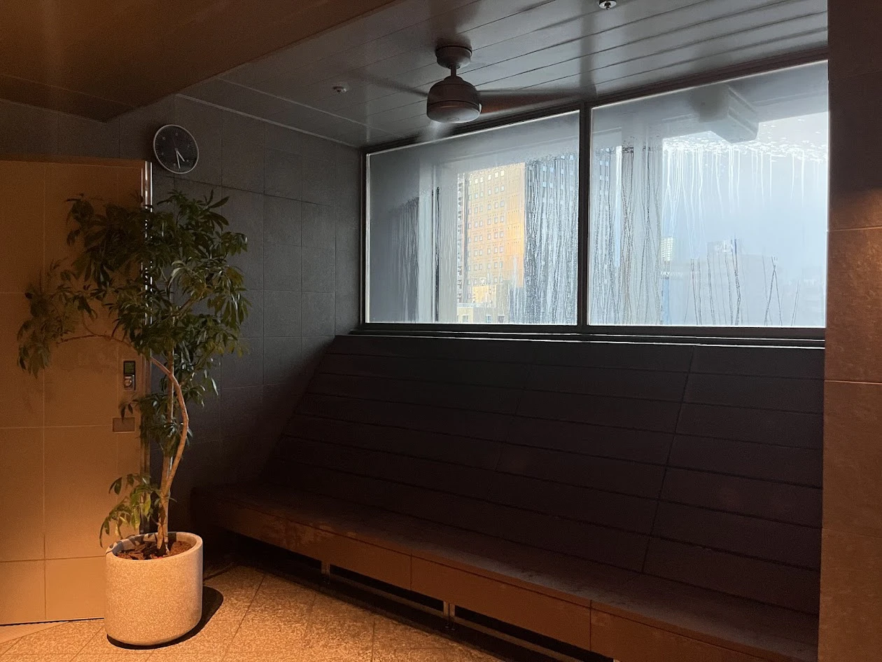 続いてこちらは「PANORAMA」。少し高めの座面で、足が浮きます!足をブラブラさせながら高輪の景色を一望できるとは。こんな贅沢なサウナ、他にあるでしょうか…。