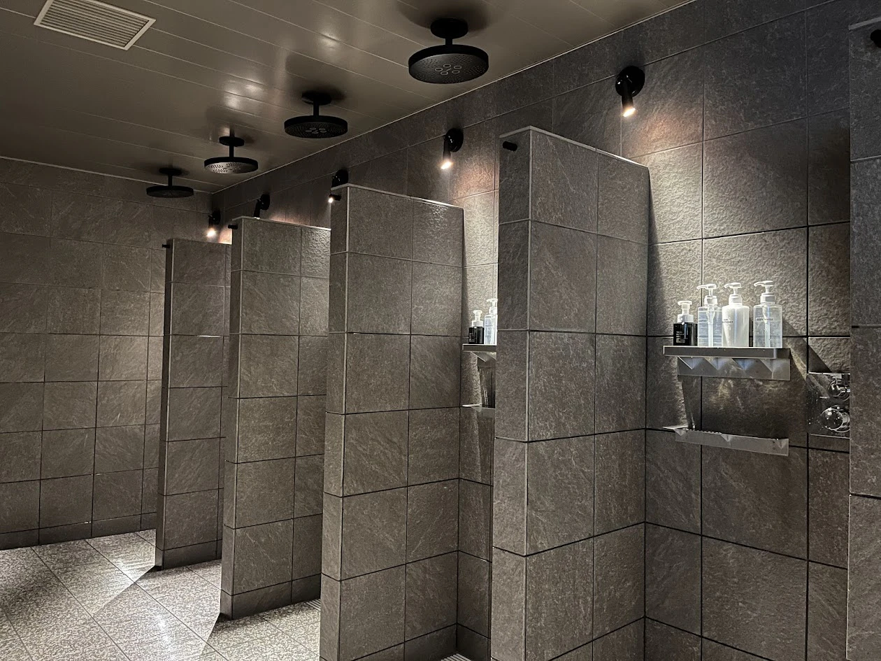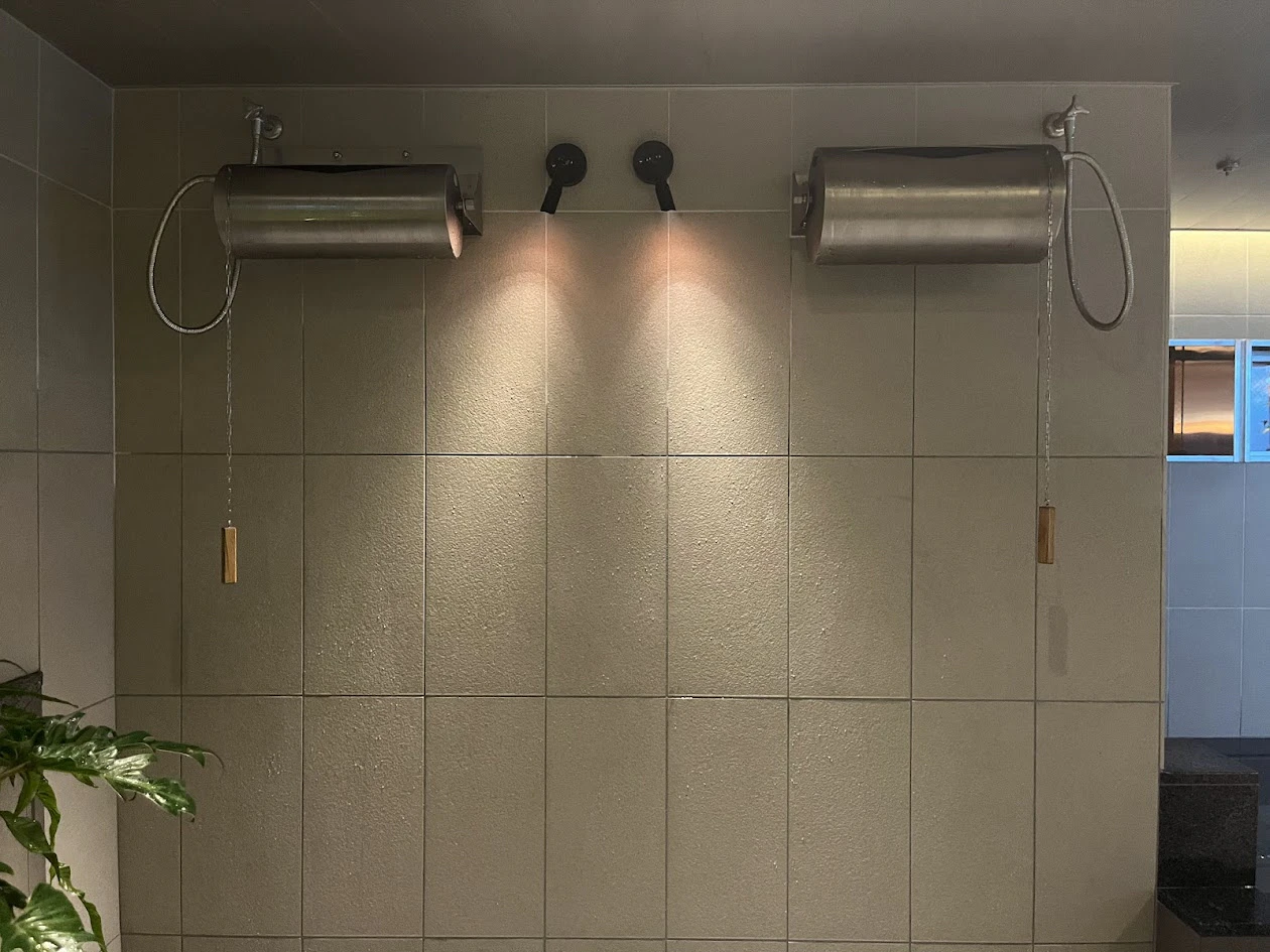 たとえばシャワー。数がたくさんあるので「全部埋まってる…」というストレスもなさそうです。ひもを引っ張るとザブン!と水が流れるシャワーは爽快そのもの。