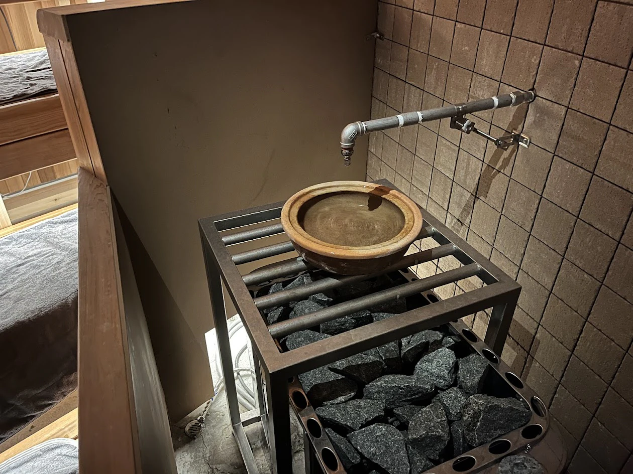 サウナ内には給水スポットも完備。冷水器だと冷たすぎるので、個人的には水が「常温」だったのがとても嬉しかったです。