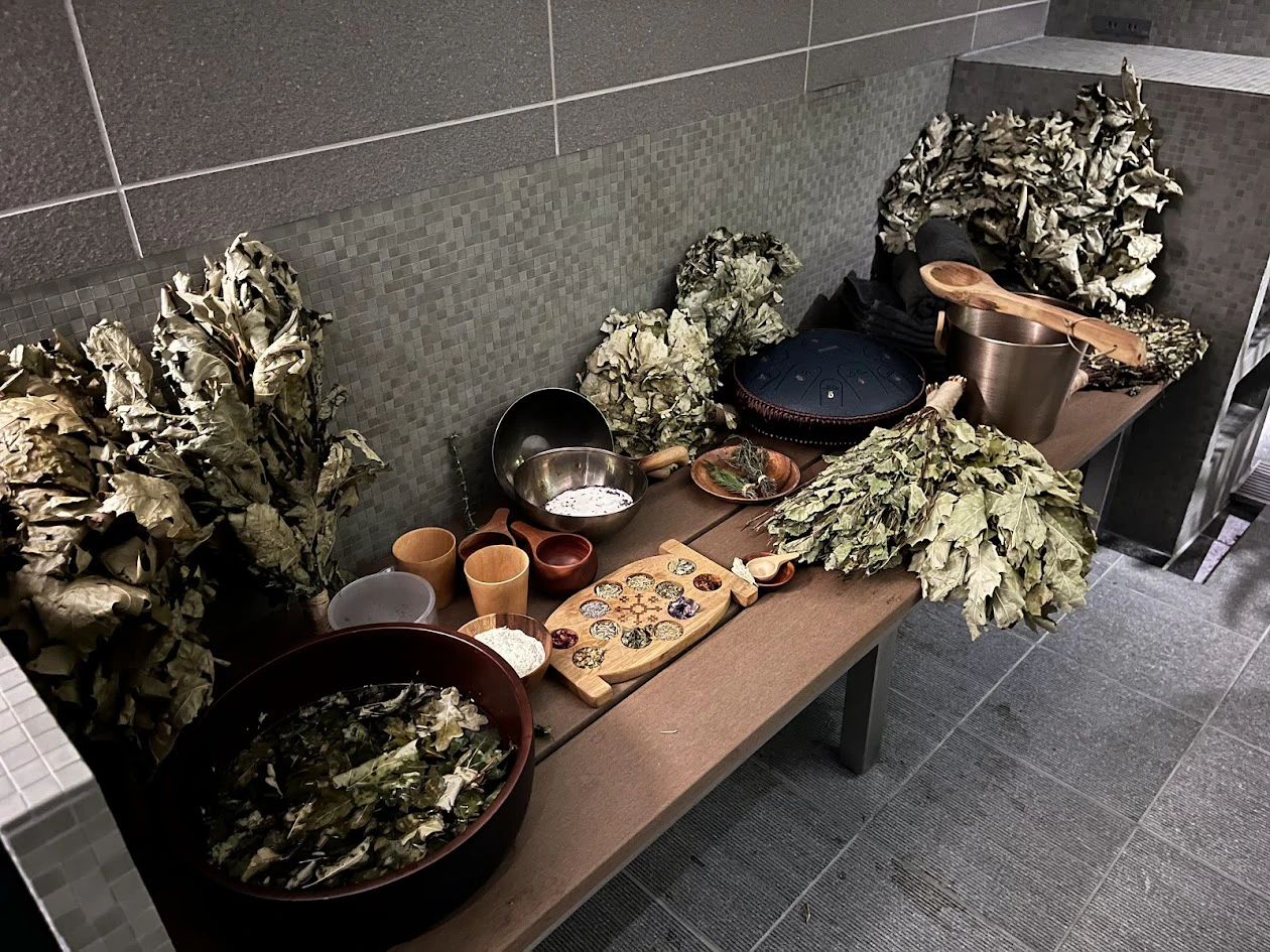 ここではウィスキングも受けられるそう!ヴィヒタやこだわりのハーブ類などが所狭しと並べられています。