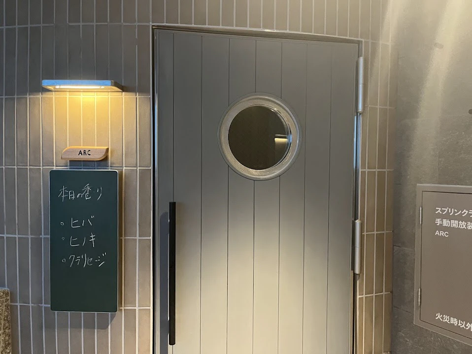 部屋全体がカーブしているのは不思議な感覚でした。室内はヒバ、ヒノキなど木系のアロマの香りが立ち込めていて癒されました。