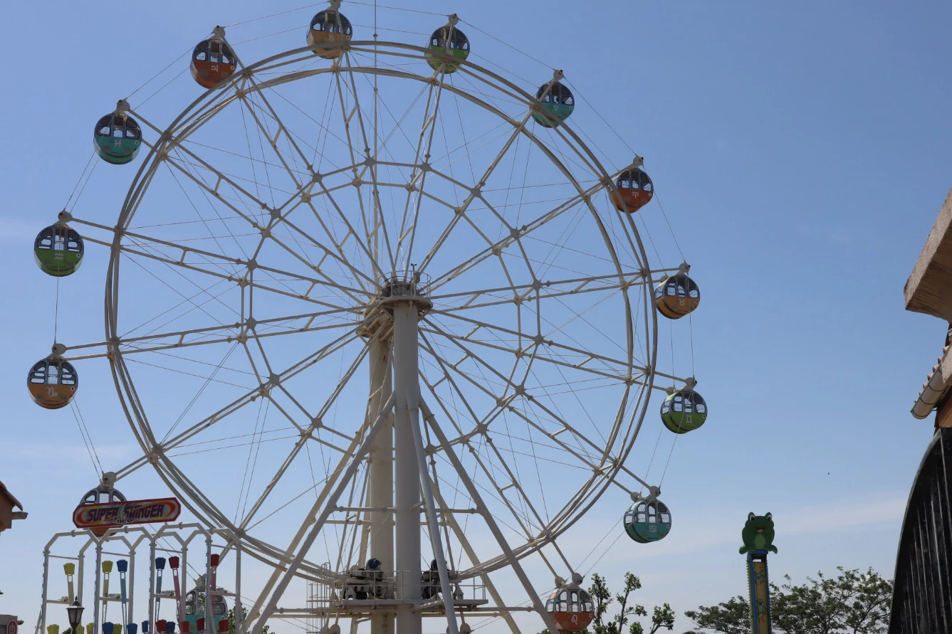 遊園地にはミニジェットコースターや観覧車などがあり、3歳未満でも保護者同伴で乗れるアトラクションが揃っています。娘は小さなカエルのフリーフォールにのって、大興奮でした。