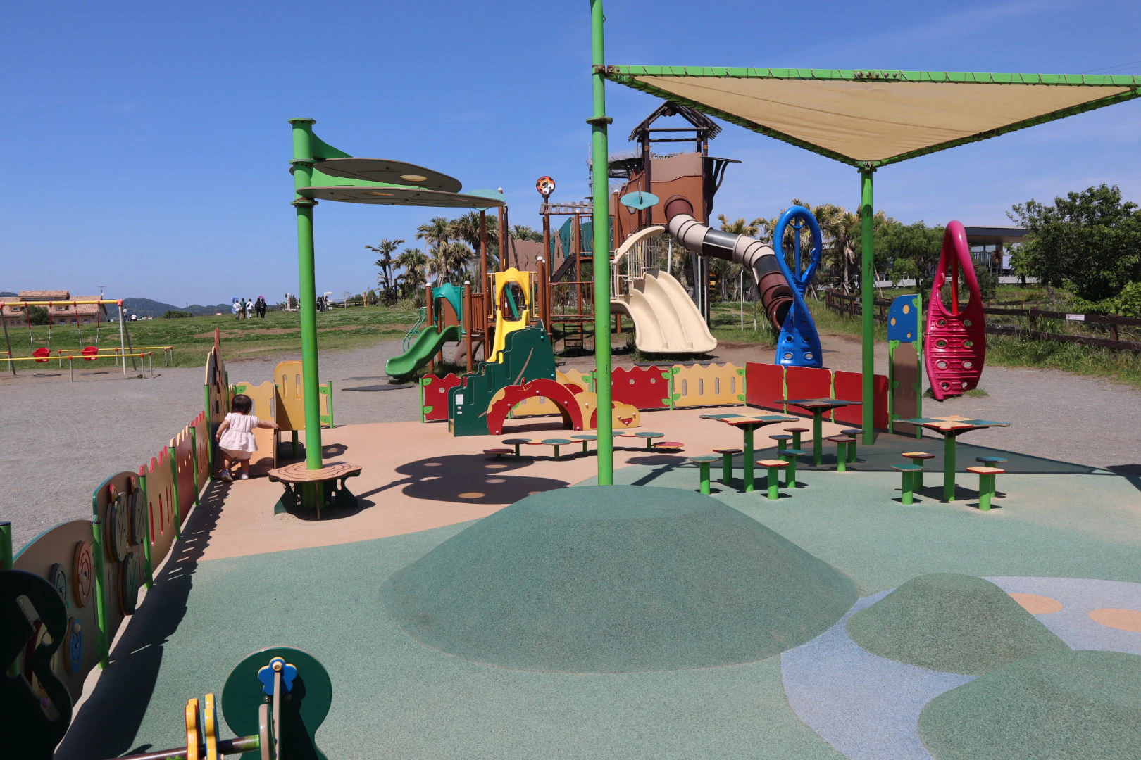 最後にメインロードの脇にある遊具広場で少し遊んでから、帰路につきました。遊具広場は小さい子用のスペースもしっかり確保されているので、年齢の違う子どもを連れて遊ぶ場合も安心です。
