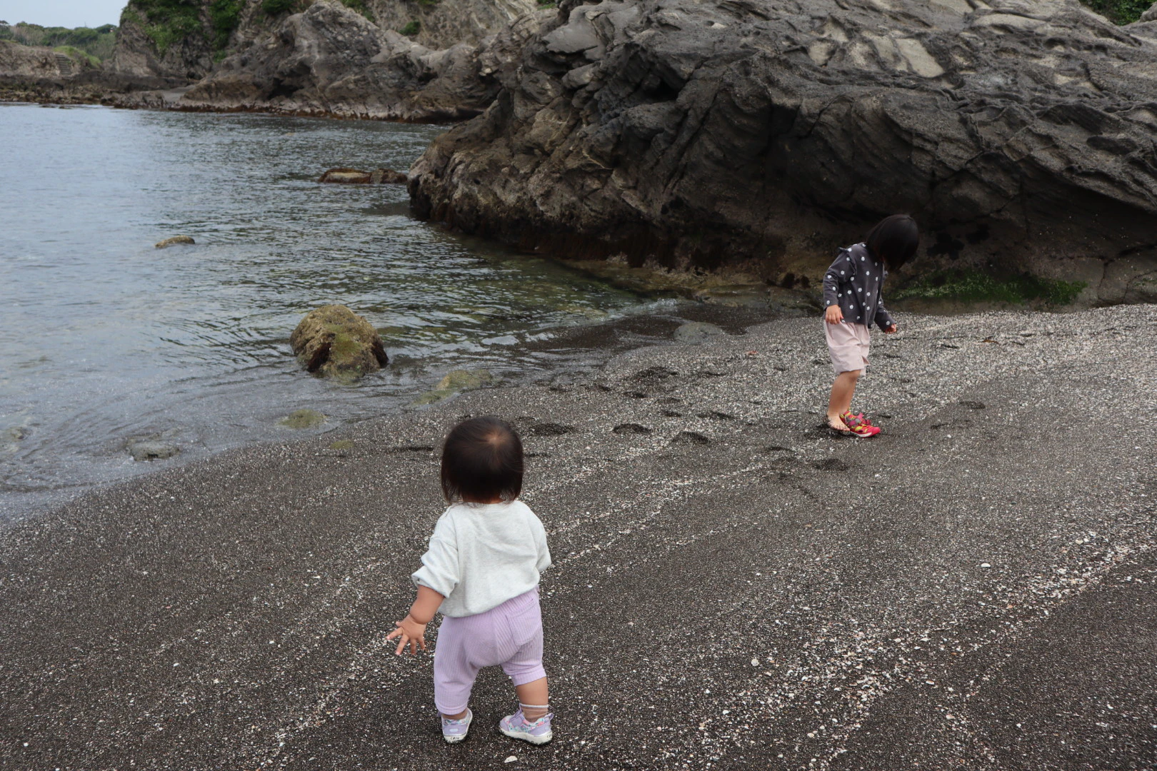 岩場にいる小さなカニや魚を観察して、海岸のブランコに揺られて子ども達とのチルタイムを満喫できました。砂浜には貝殻がたくさん落ちているので、貝拾いも無限に楽しめます。きれいな色や珍しい形の貝もあり、大人達も思わず夢中になってしまいました。