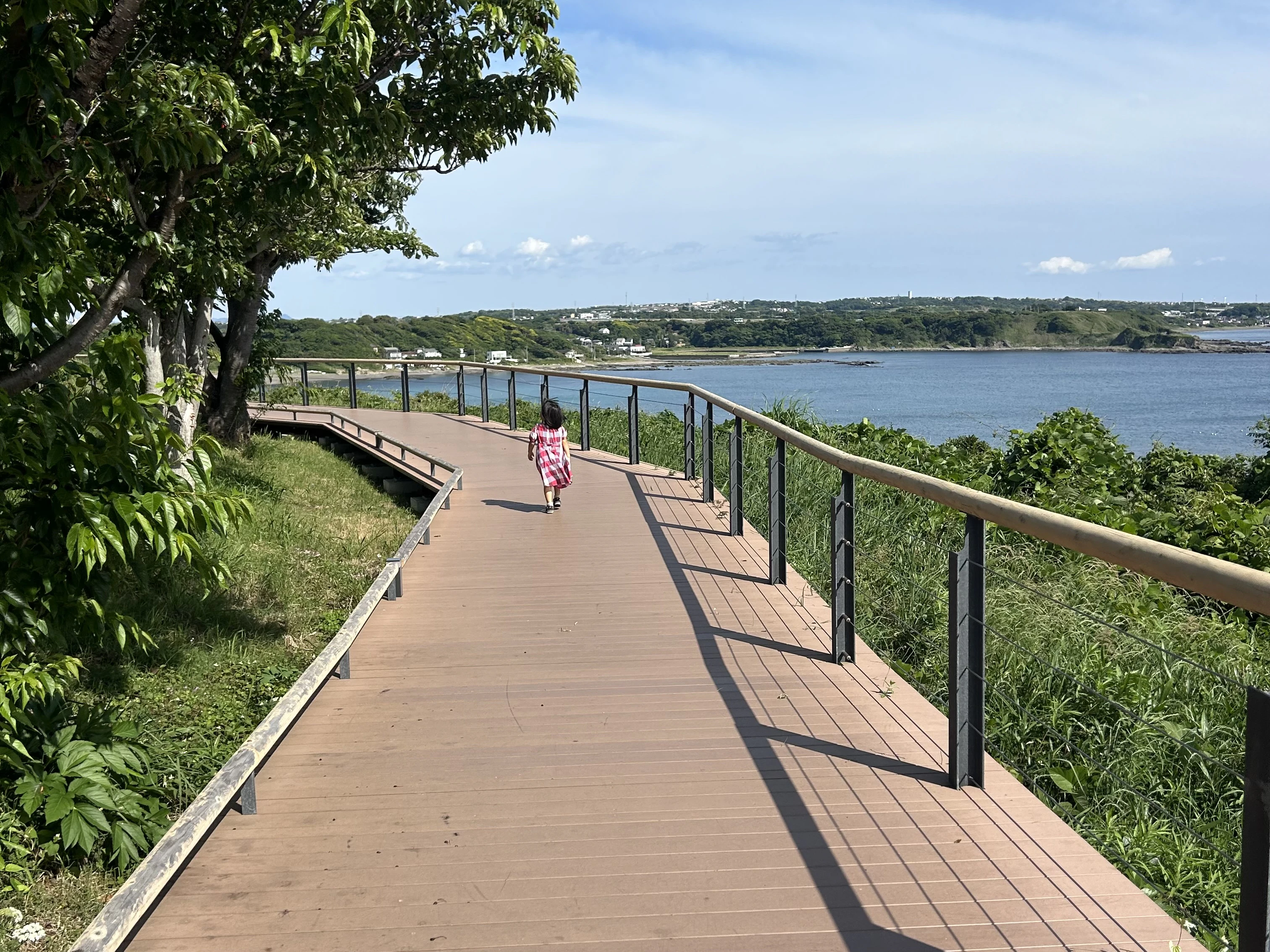 ドーナッツを食べる前に、管理棟横にある「CLIFF CAFE」にてコーヒーを購入。海沿いにはウッドデッキの散策路が設置されており、海を眺めながら散歩できる最高にチルい道です。