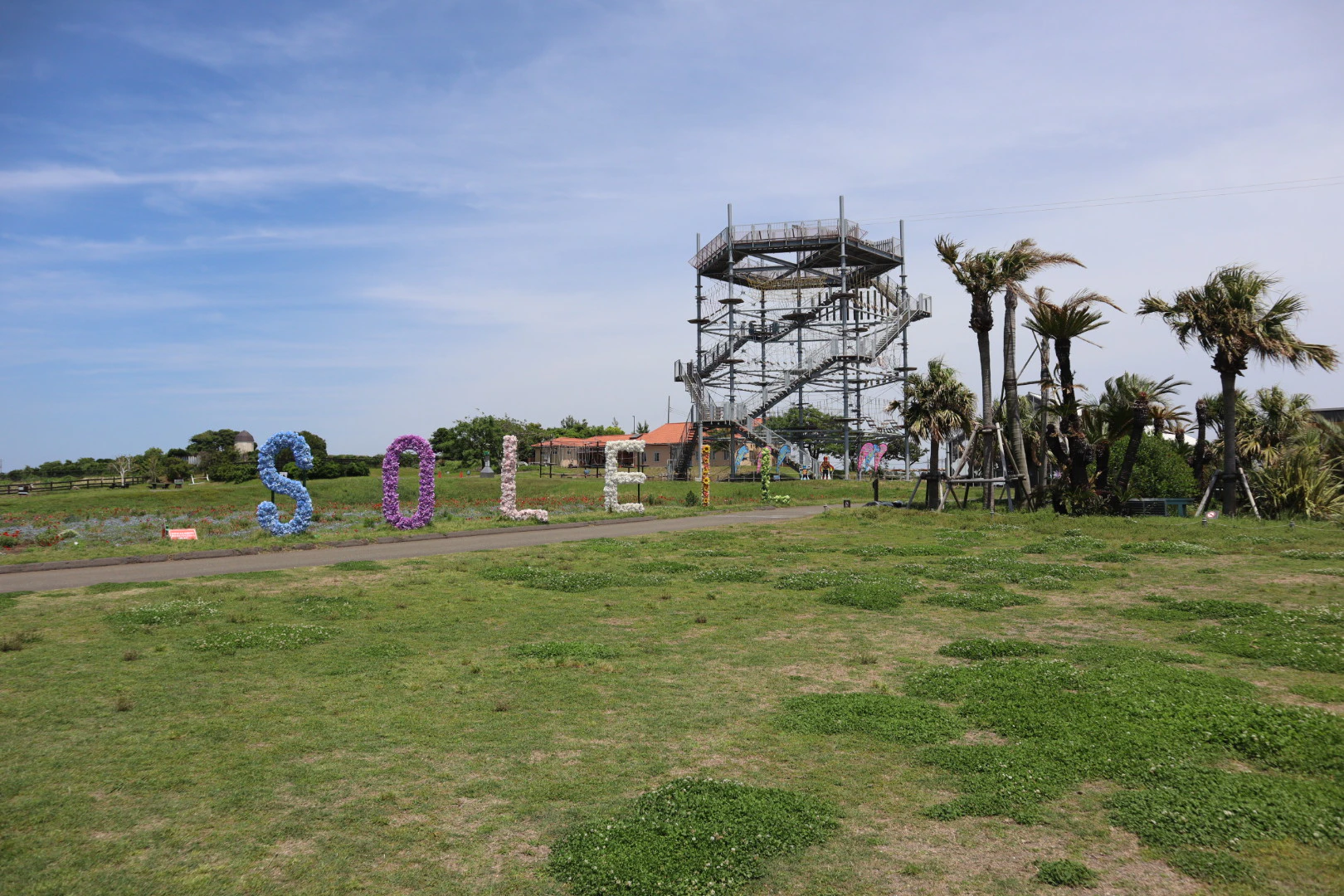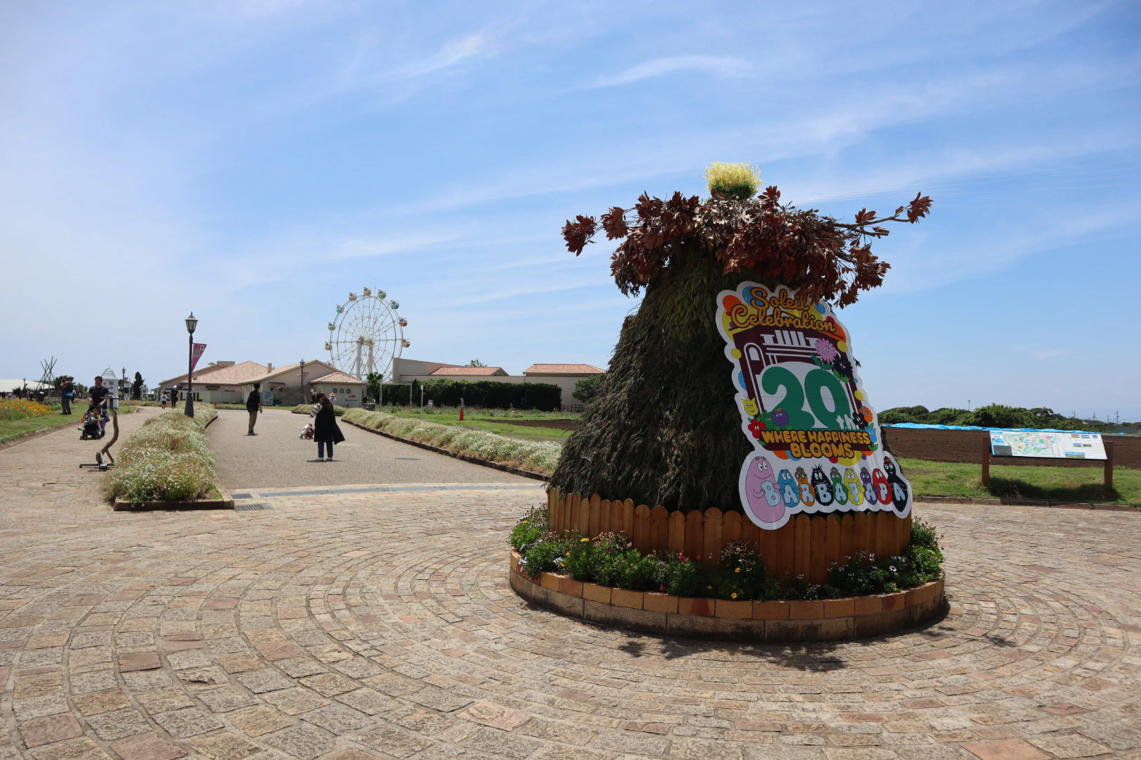 再び車にのって10分ほどでソレイユの丘に到着!!入ってすぐ左側には広大な花畑が広がっています。園内にはフォトスポットが設置されており、花で作られた可愛らしいオブジェや装飾がたくさん置かれていました。チェックインまで時間があったので、芝生の広場で昼食を食べ、遊園地エリアへ。