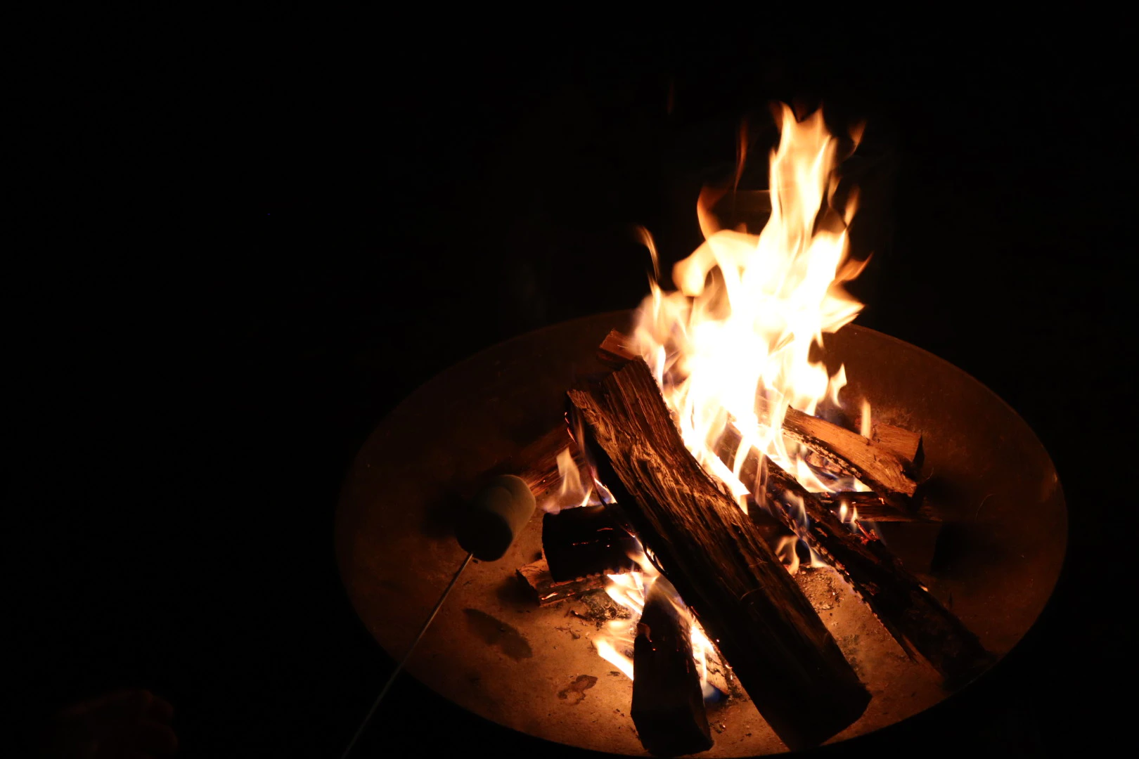 夕食後はウッドデッキの前にある焚き火台で、マシュマロ焼きタイム!セットでマシュマロが2つ付いてきましたが、1つで通常の10個分はあろうかという巨大なサイズ感にびっくり。