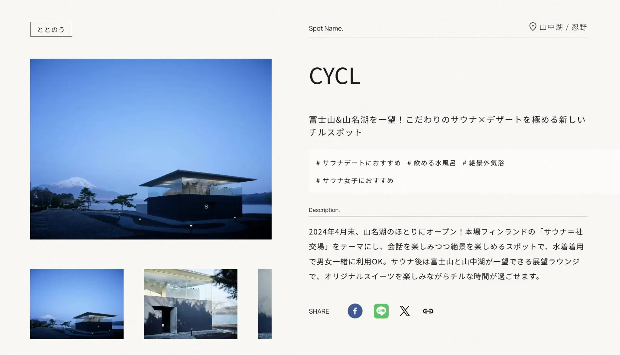 都会では決して味わうことのできない、サウナと絶景で「非日常」を感じ、フレッシュなデザートでエネルギーチャージ。乾いた心と身体に潤いをあたえ、日常に「好循環」をもたらしてくれるCYCL。また必ず再訪したいです。