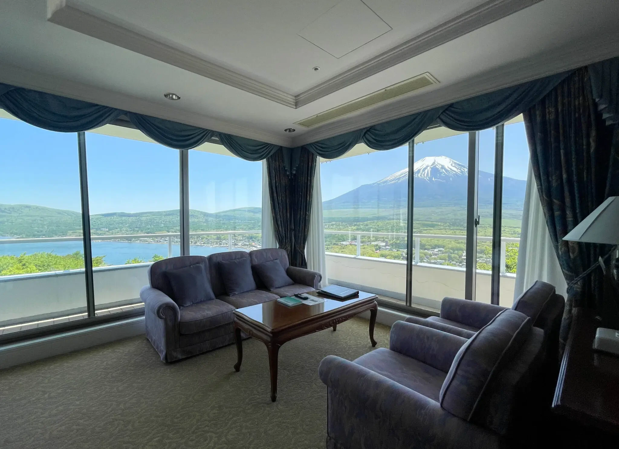 贅沢な時間と景色を堪能したい方におすすめの「スイート」は、正面から富士山を望める絶景ビューの客室です。ぜひバルコニーに出て、心ゆくまで景色と山中湖の空気を堪能してください。