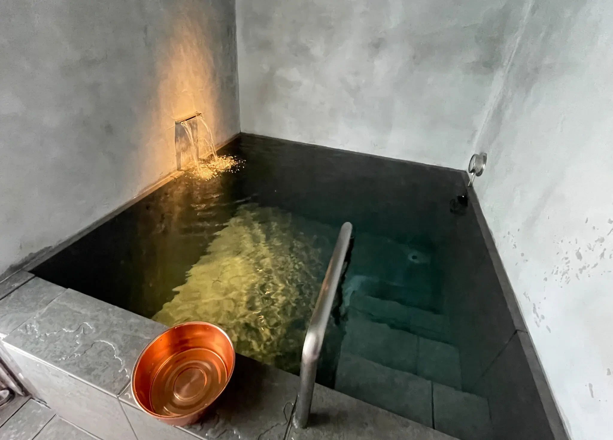 水温は12度とキンキンに冷えた設定ですが、不思議と冷たさは感じません。これは、15分間サウナをしっかり堪能したおかげなのか、まろやかな水質のおかげなのか……。とにかく、心から「気持ちいい!」と感じた至福の水風呂体験でした。