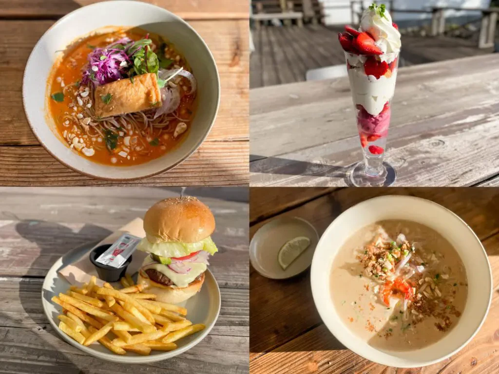 こちらでは、季節のフルーツを使った美しいフルーツパフェや種類豊富なカフェごはんを堪能できます。