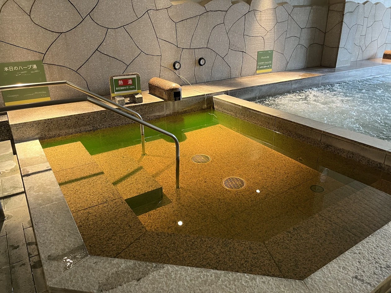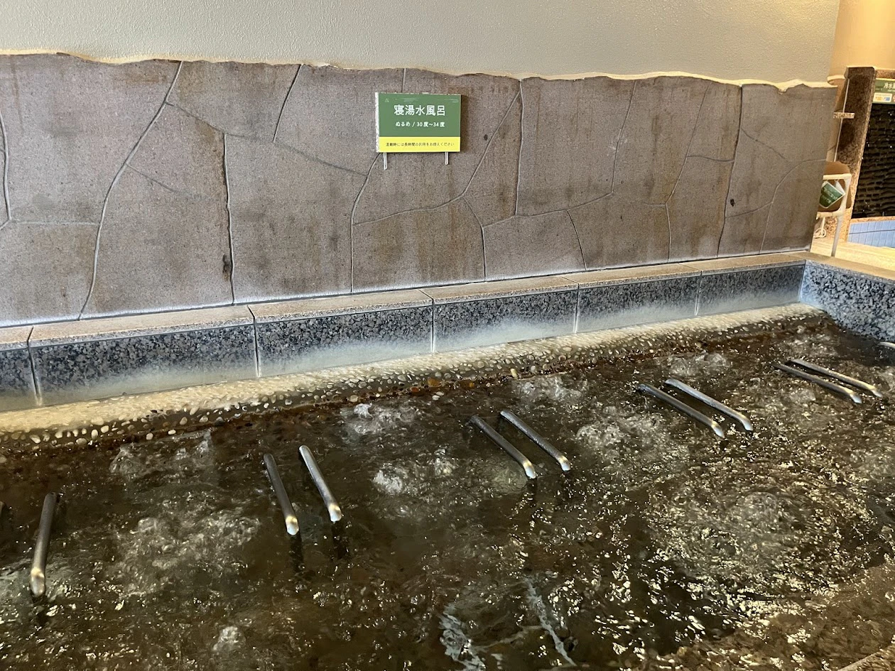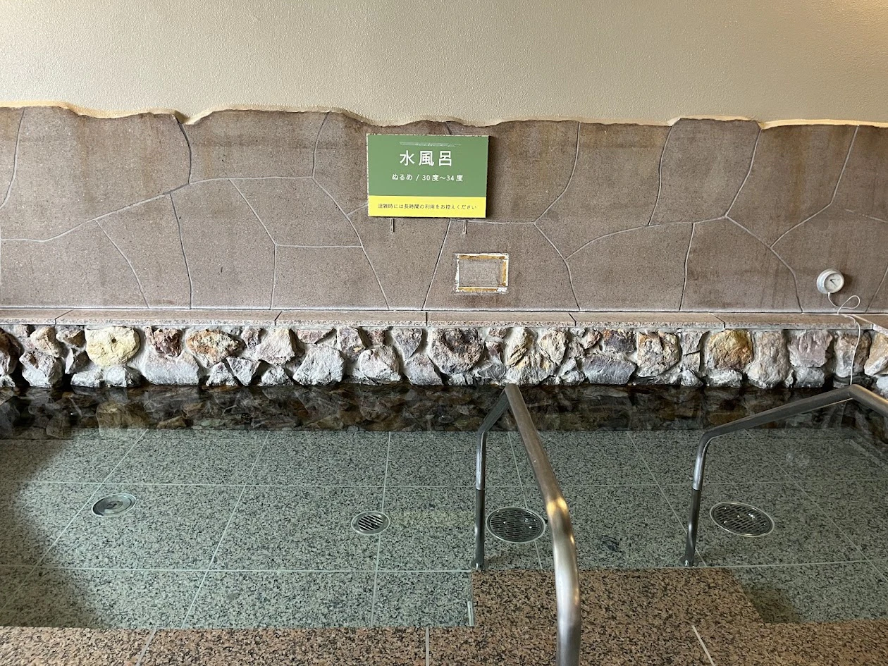 同じく30〜34度ほどの温度設定で、ずっと入っていたくなる心地よさ。水風呂とお風呂の間のような絶妙な温度帯です。