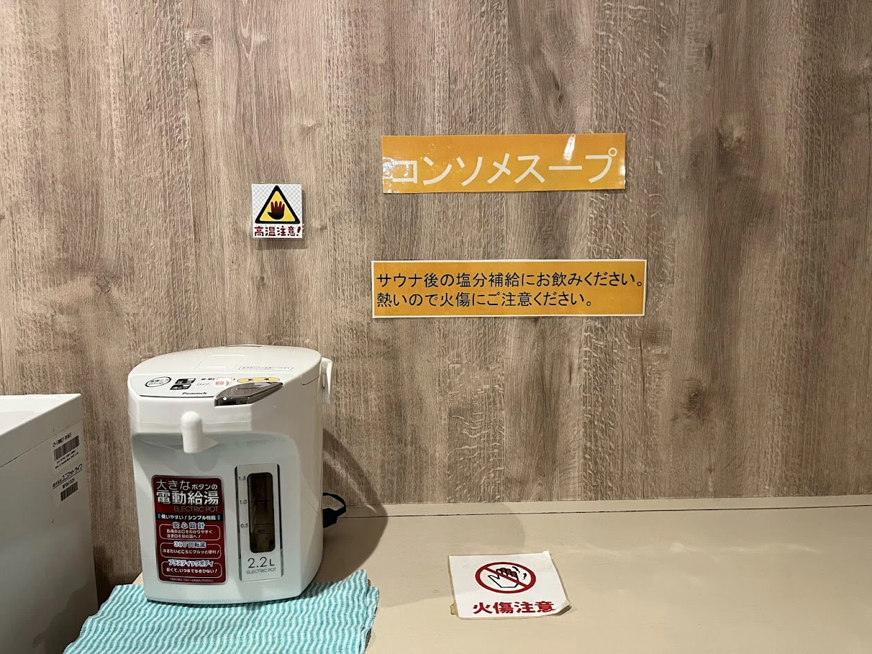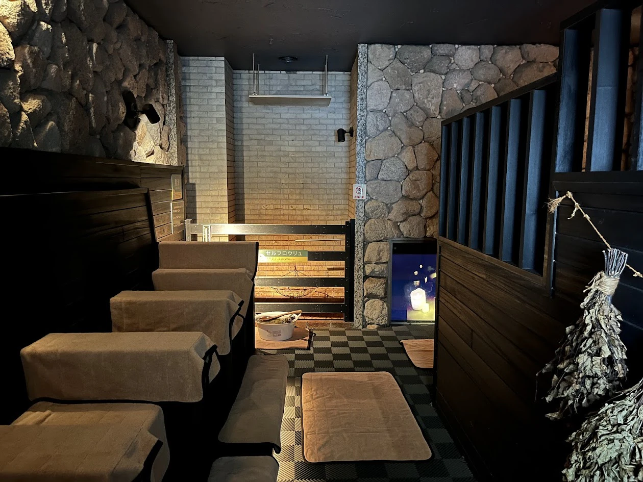 お寺の鐘のようなやわらかく落ち着いた音色と、流れるオートロウリュ。ハーブの香りが室内全体に行き渡り、ちょっとした瞑想状態に導いてくれます。五感全体でチルを味わうなら、ここに来れば間違いありません。